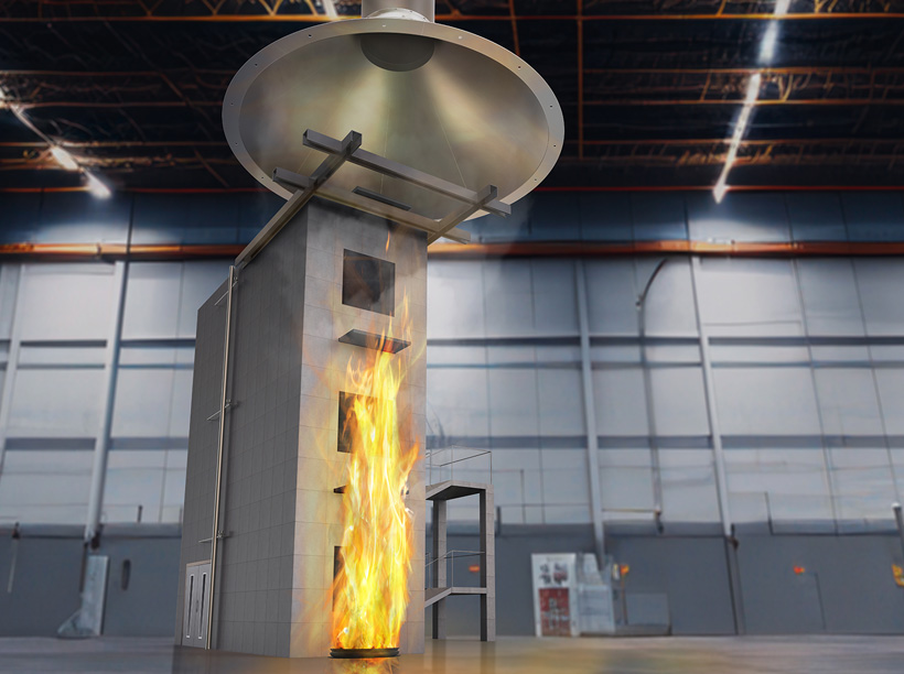 1.锥形烟气收集器安装于试样的正上方,集烟罩尺寸根据实际热释放速率测量需求(1MW~20MW可选)确定;
